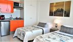 Ubicado en la séptima planta, consta de cocina abierta, zona de dormitorio con dos camas individuales, armarios empotrados, cuarto de baño con bañera y lavadora y amplia terraza con vistas espectaculares al mar.